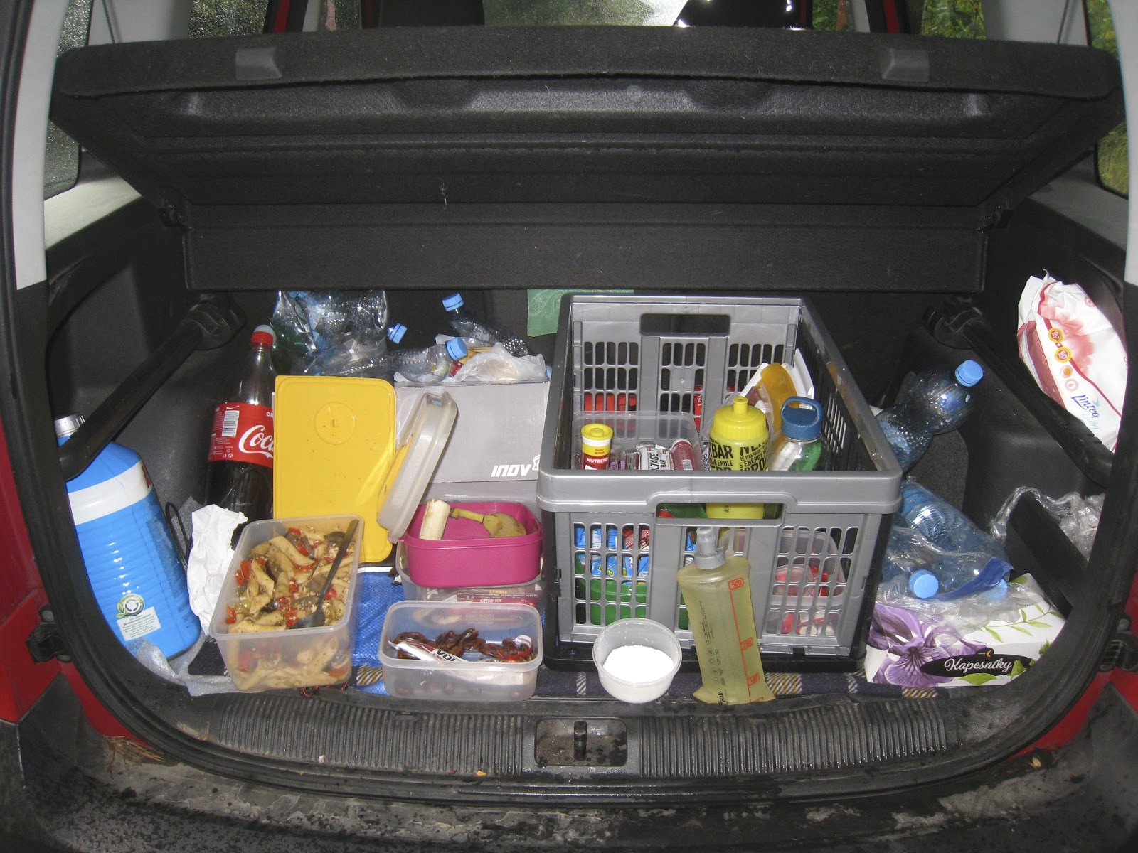 6:30 / neseme věci do auta. Jídlo (gely, tyčinky, přesnídávky, banány, datle, těstoviny), pití (voda, ionťák, kola, redbull), náhradní oblečení a boty a pár doplňků, které by se mohly hodit.